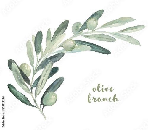 Watercolor Illustration With Olive Branch Buy This Stock